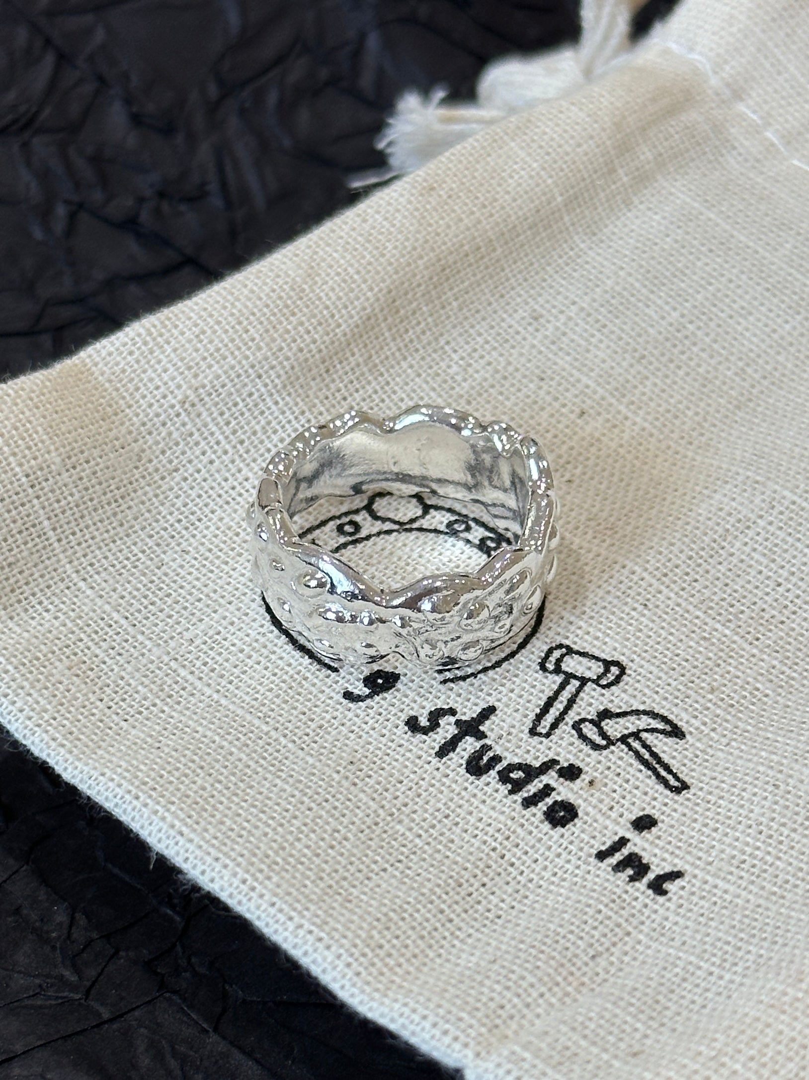 Each ring is handcrafted one at a time, entirely by our hands—once it's sold, it's gone for good. No two rings can ever be the same.