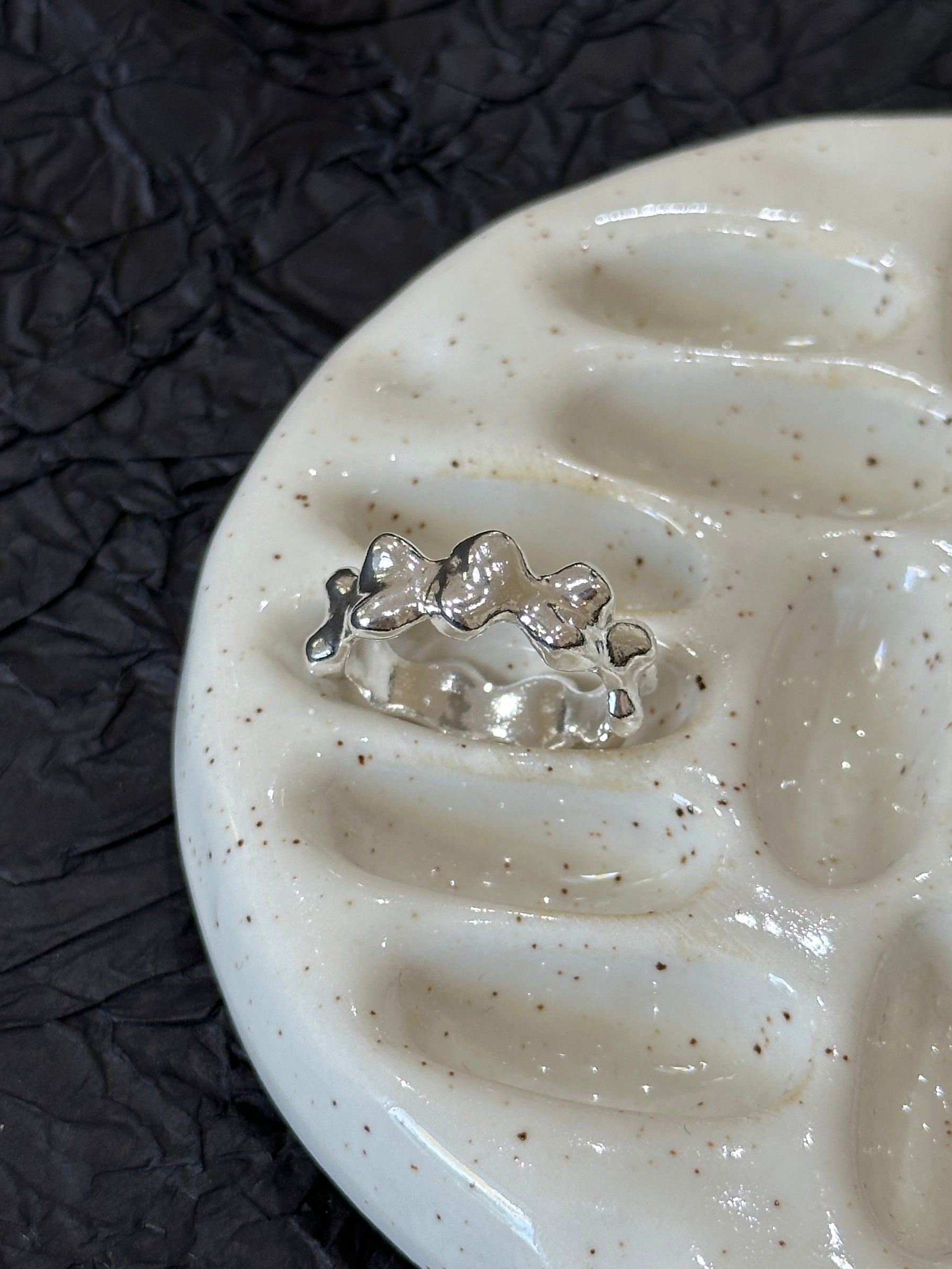 - Silver Clay Properties: Silver clay is a unique material with lower density compared to traditional solid silver, which gives it its distinct qualities. While durable for everyday wear, silver clay can be more prone to breaking from sudden impact or pressure. We take great care in ensuring that the creations are properly formed, but due to the nature of the material, it is important to handle your silver clay items with extra care.