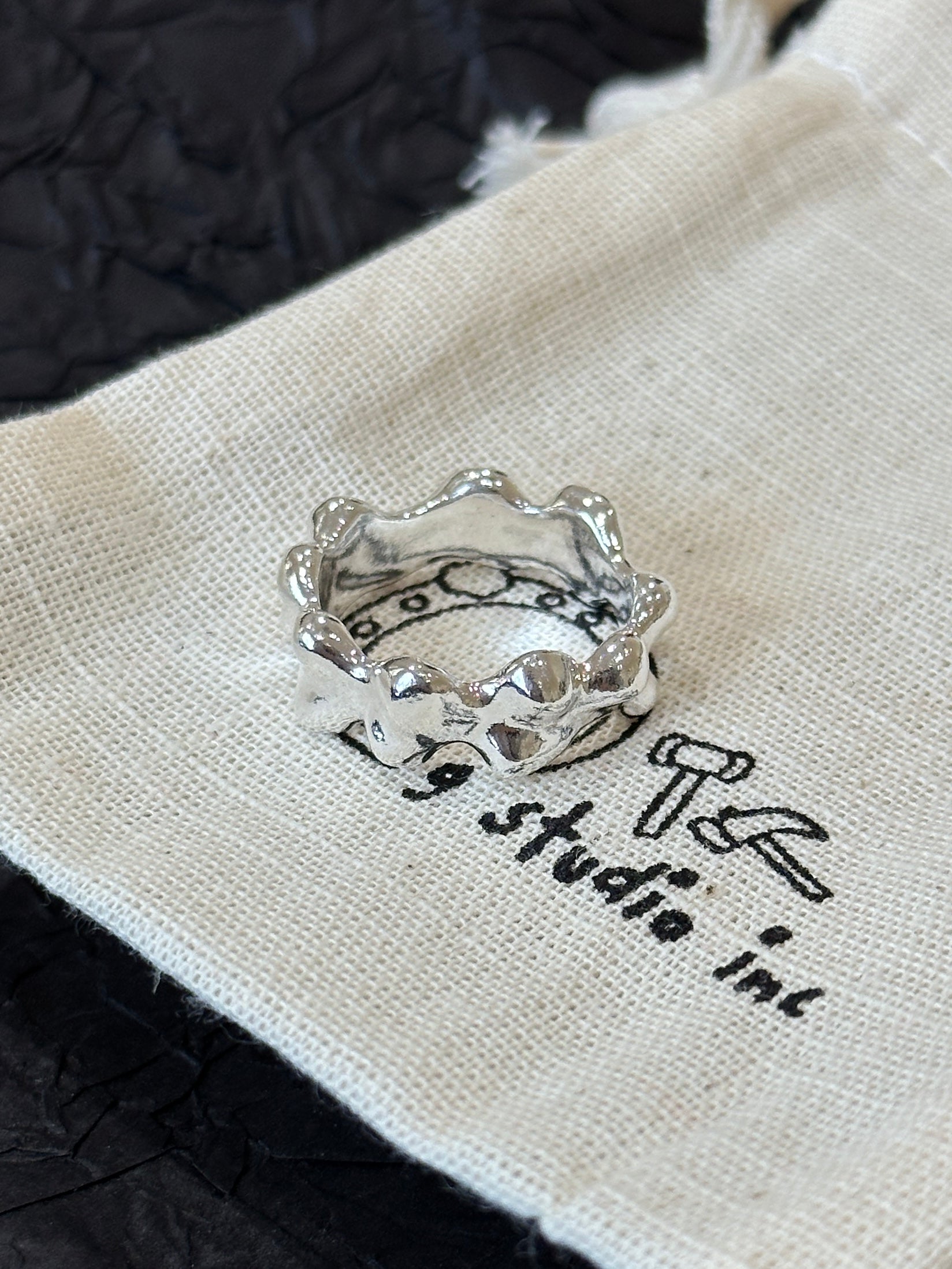 Each ring is handcrafted one at a time, entirely by our hands—once it's sold, it's gone for good. No two rings can ever be the same.