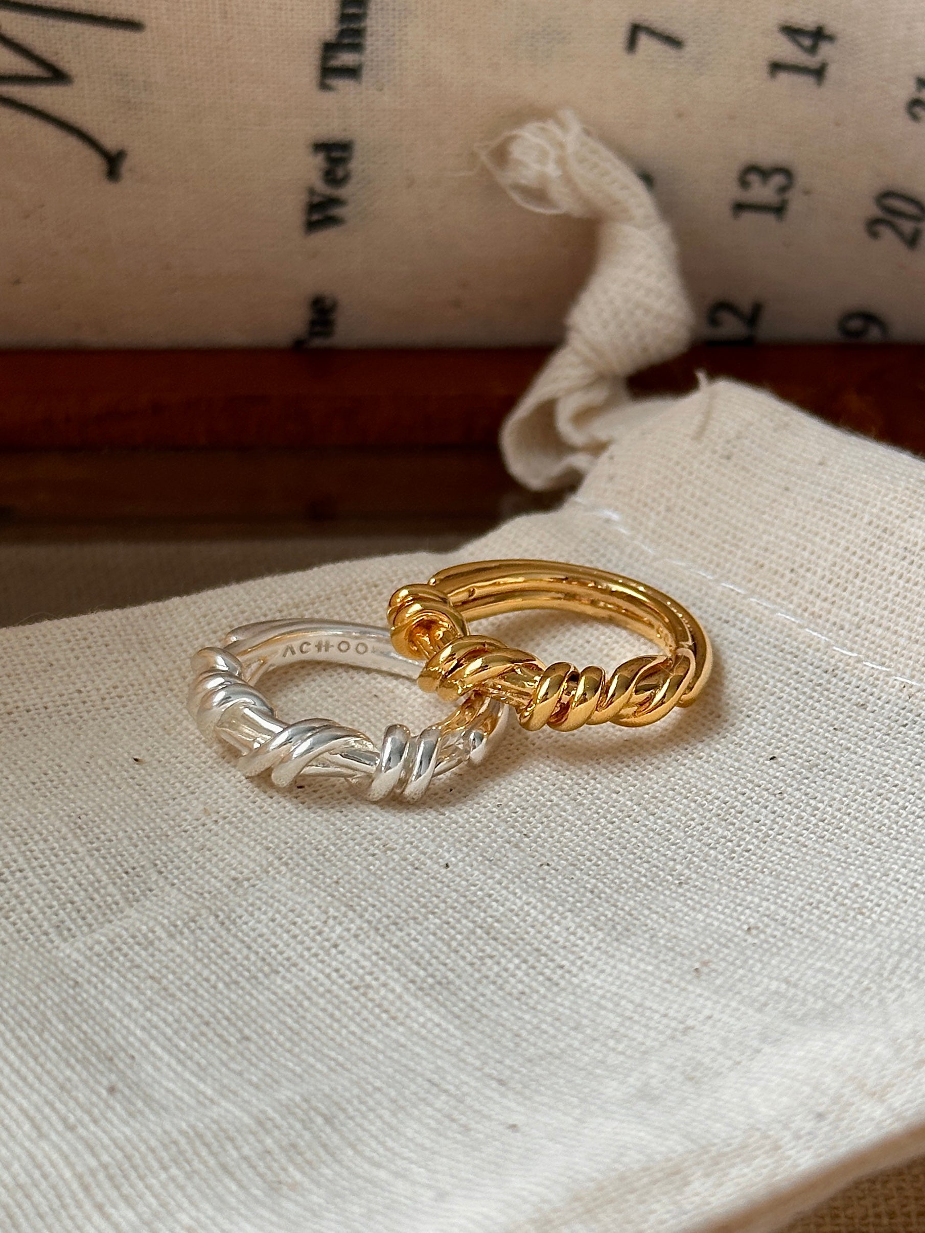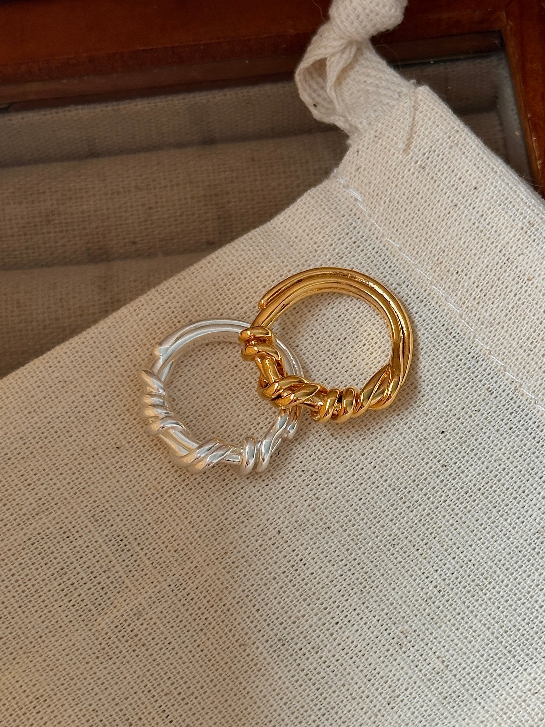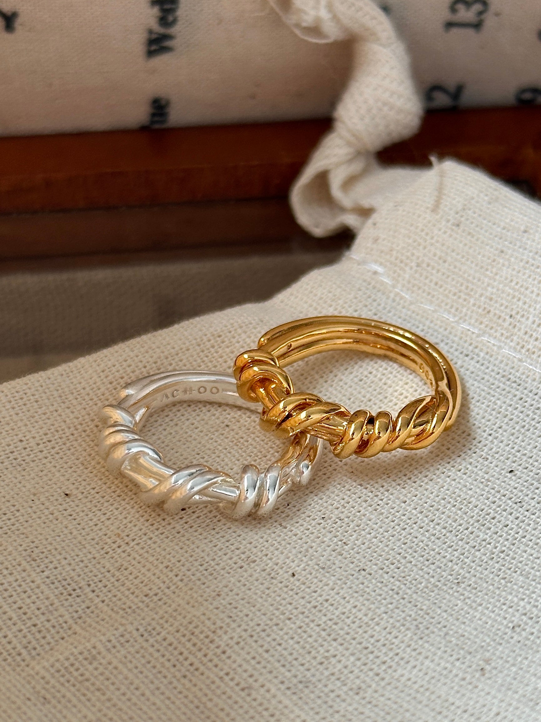S925 Silver / Gold Plated Gordian Knot Casual Twisted Ring