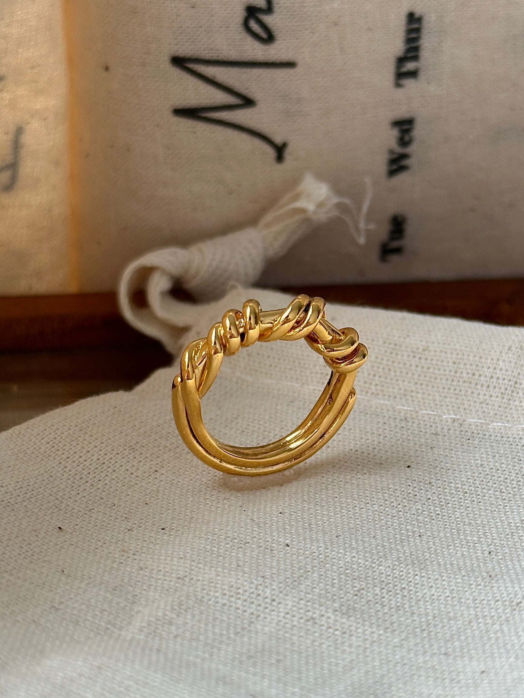 Embrace the elegance of complexity with our Gordian Knot Twisted Ring. This beautifully crafted piece features a sophisticated, casual twisted design inspired by the ancient Greek myth of the Gordian Knot — a symbol of strength, unity, and intricate beauty.