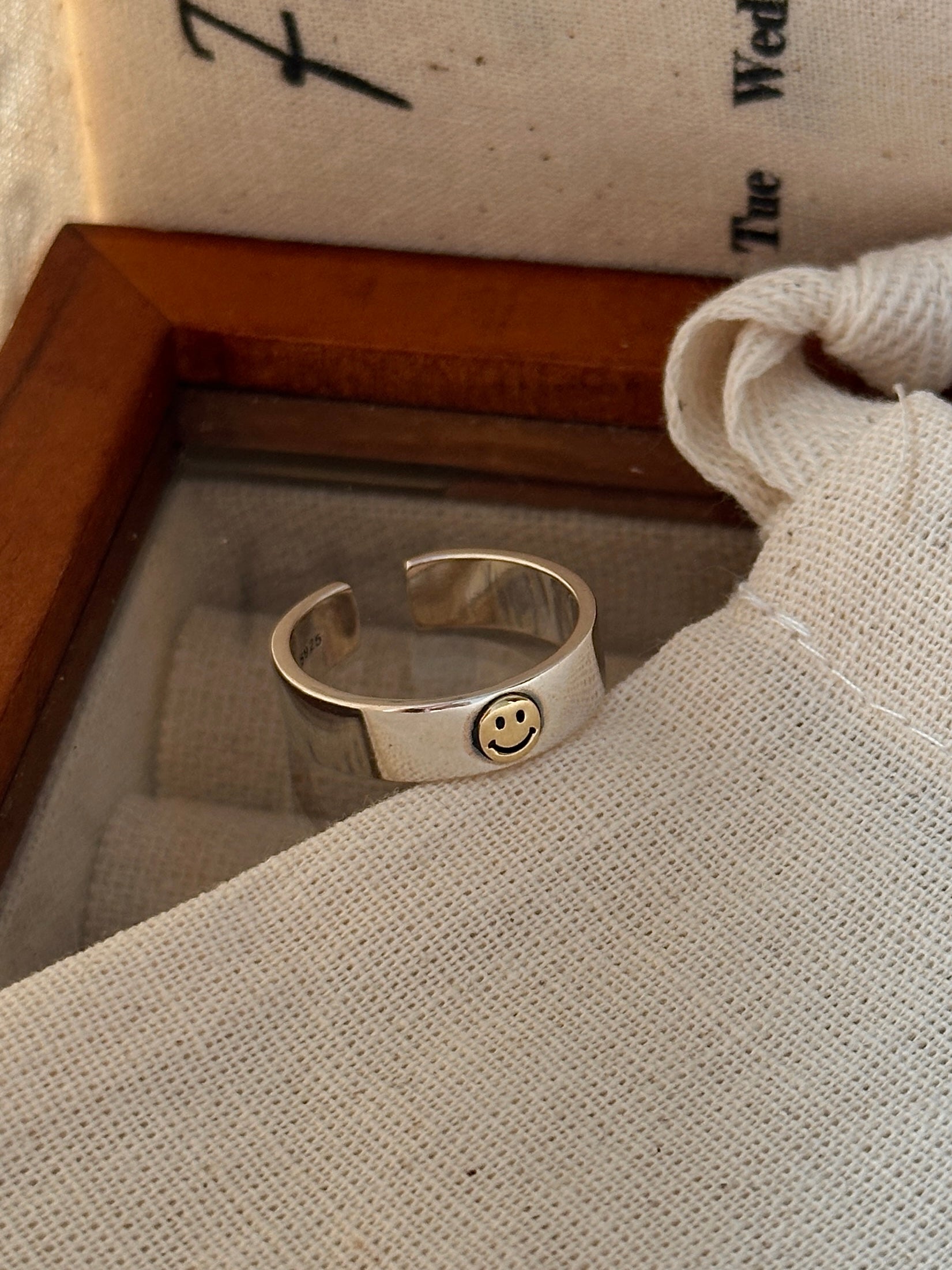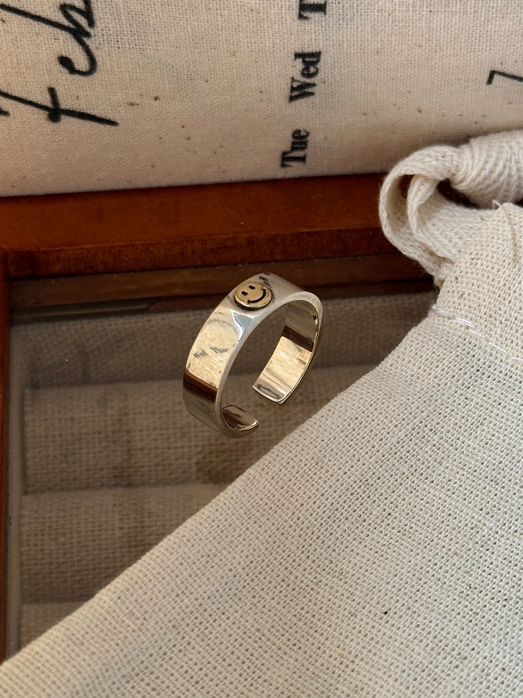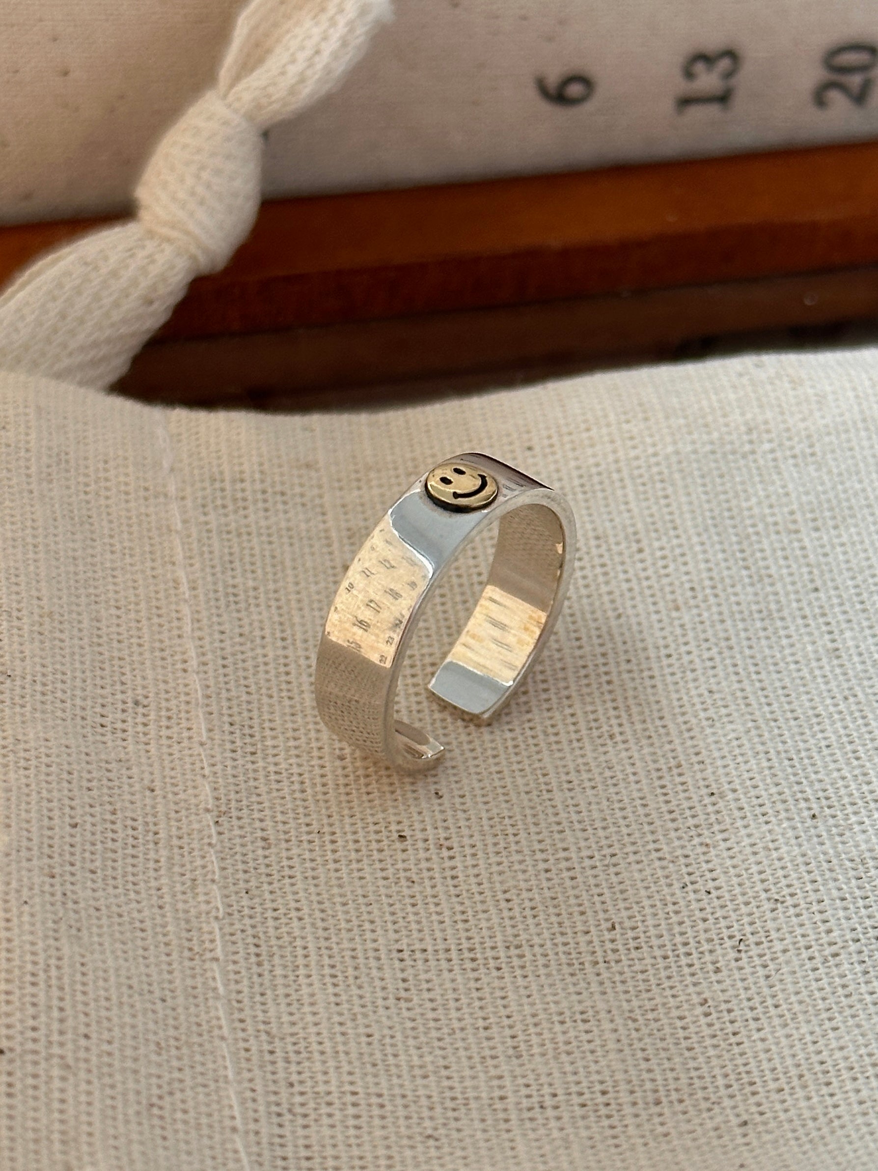 S925 Silver Minimalist Smile Face Adjustable Ring